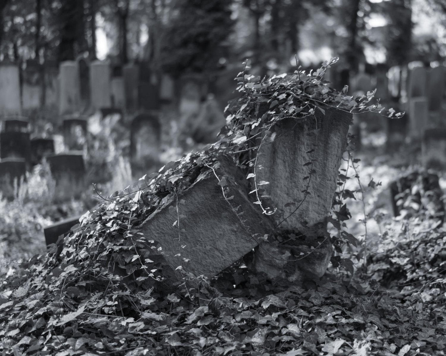 Eine Serie, die ich im Jüdischen Friedhof in der Schönauer Allee fotografiert habe. Alleine vom Fotografieren her eine der berührendsten Erfahrungen mit der Kamera für mich. Ich habe das seither nicht wieder versucht. Und ich würde es auch nicht mehr so schaffen. Einzigartig in meiner Erinnerung und meinem Empfinden.