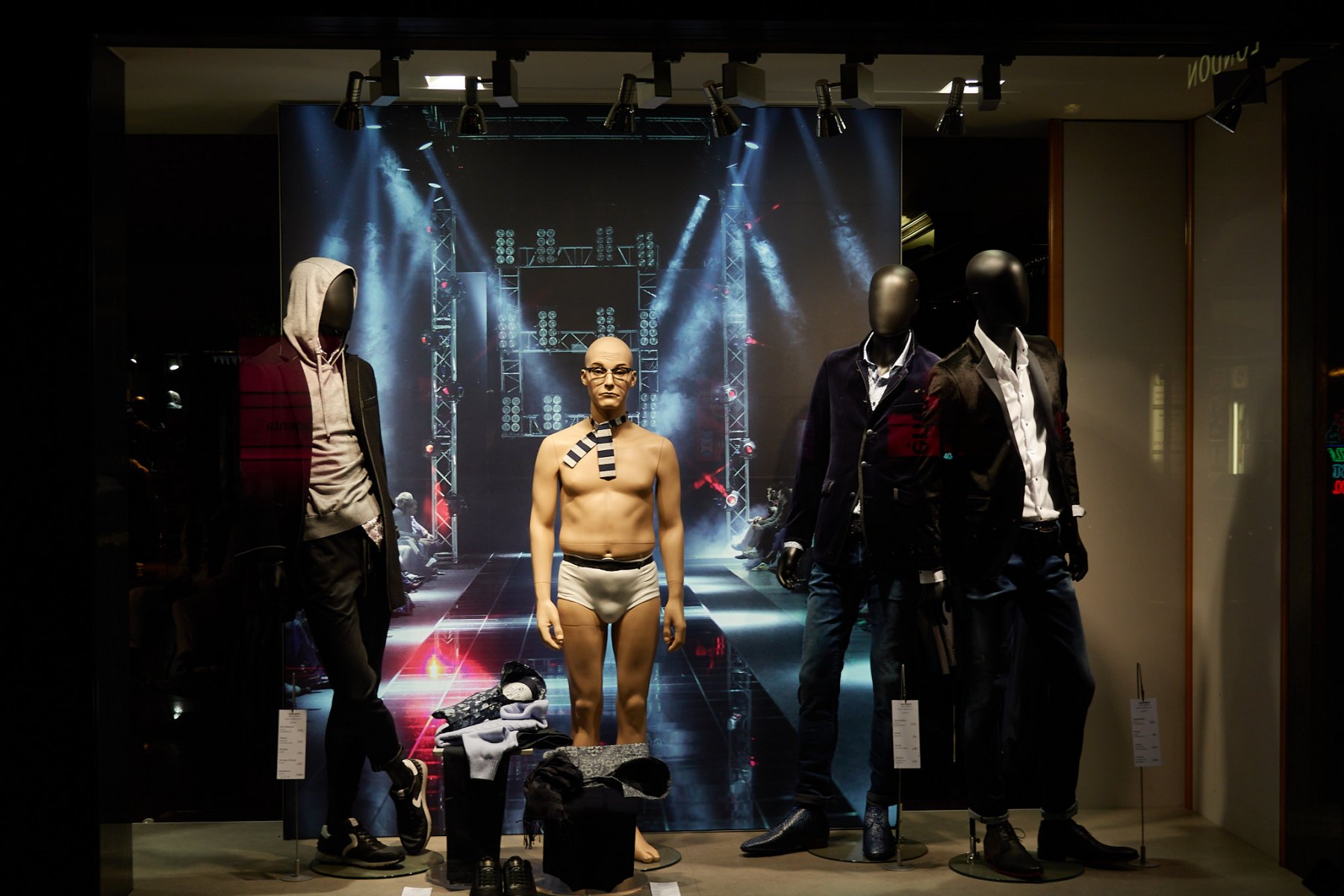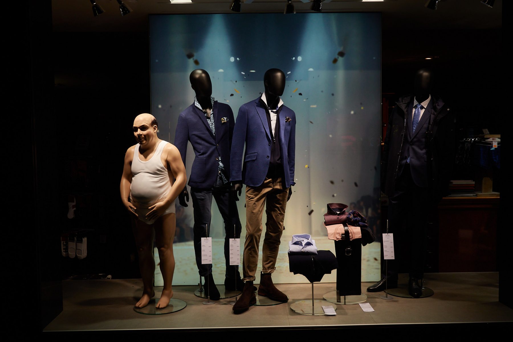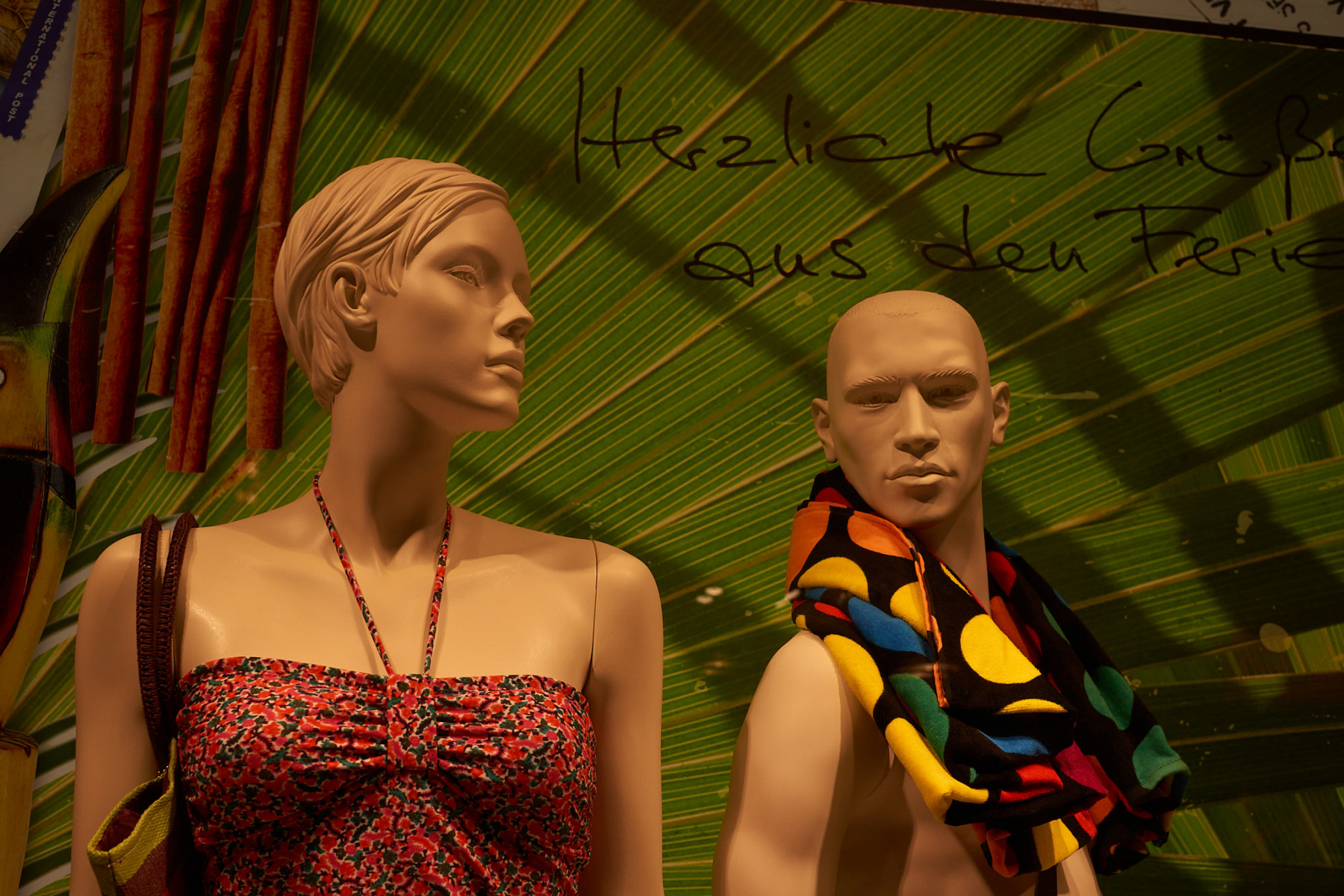 Eines der Langzeitthemen, auch aus einem Flaneurmoment heraus geboren, ist das Fotografieren von Schaufensterpuppen. Sie sind auf der einen Seite sehr schematisch und treten als vielfache Kopie ihrer selbst auf. Sie tragen auf der anderen Seite aber immer auch einen Ausdruck – und nicht nur Kleidung.