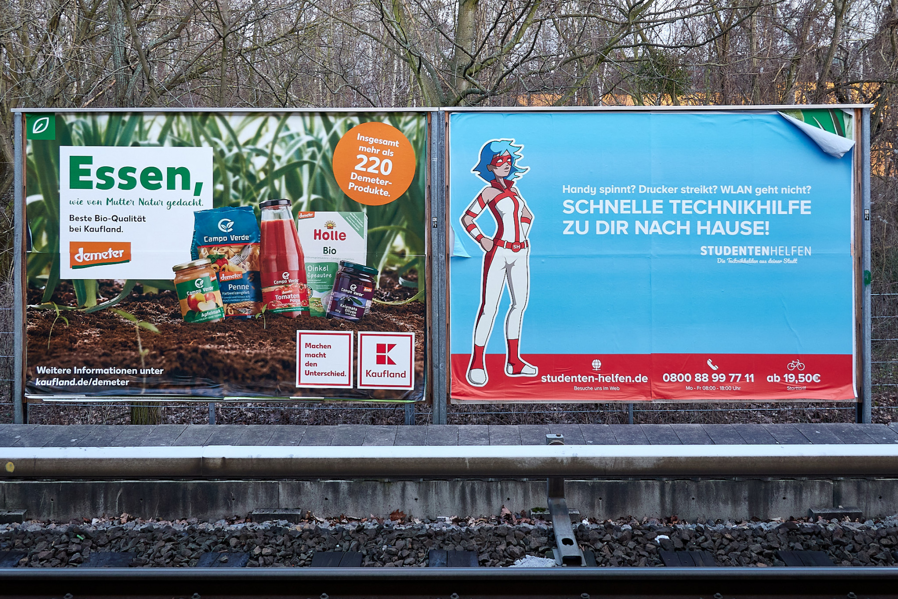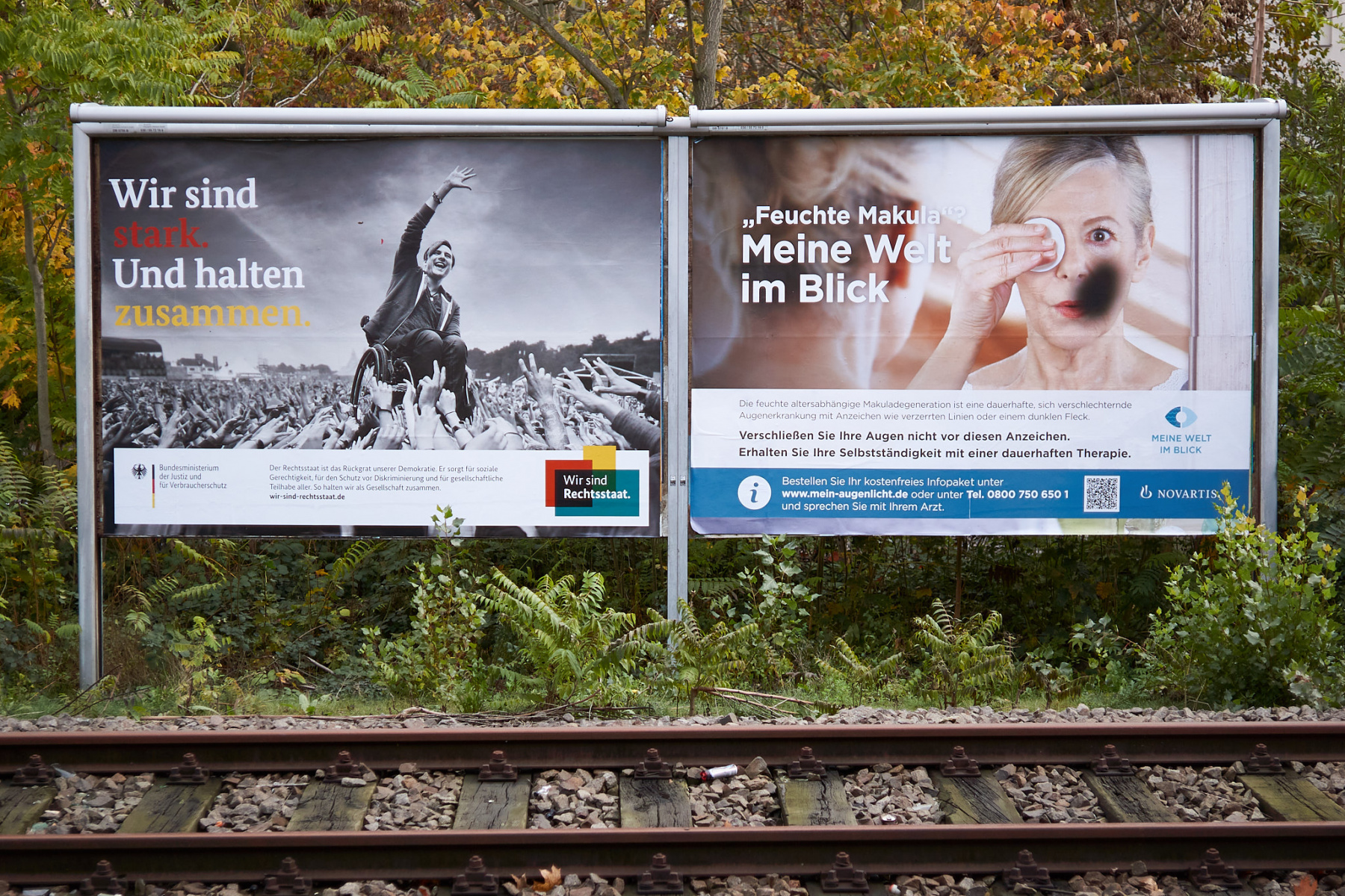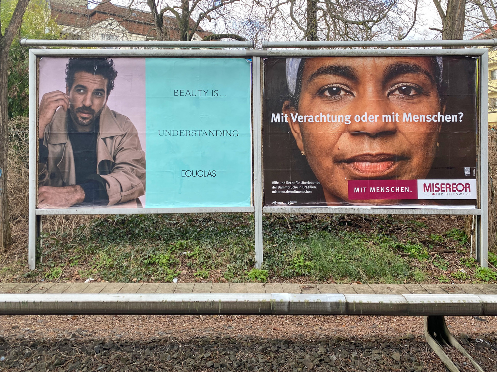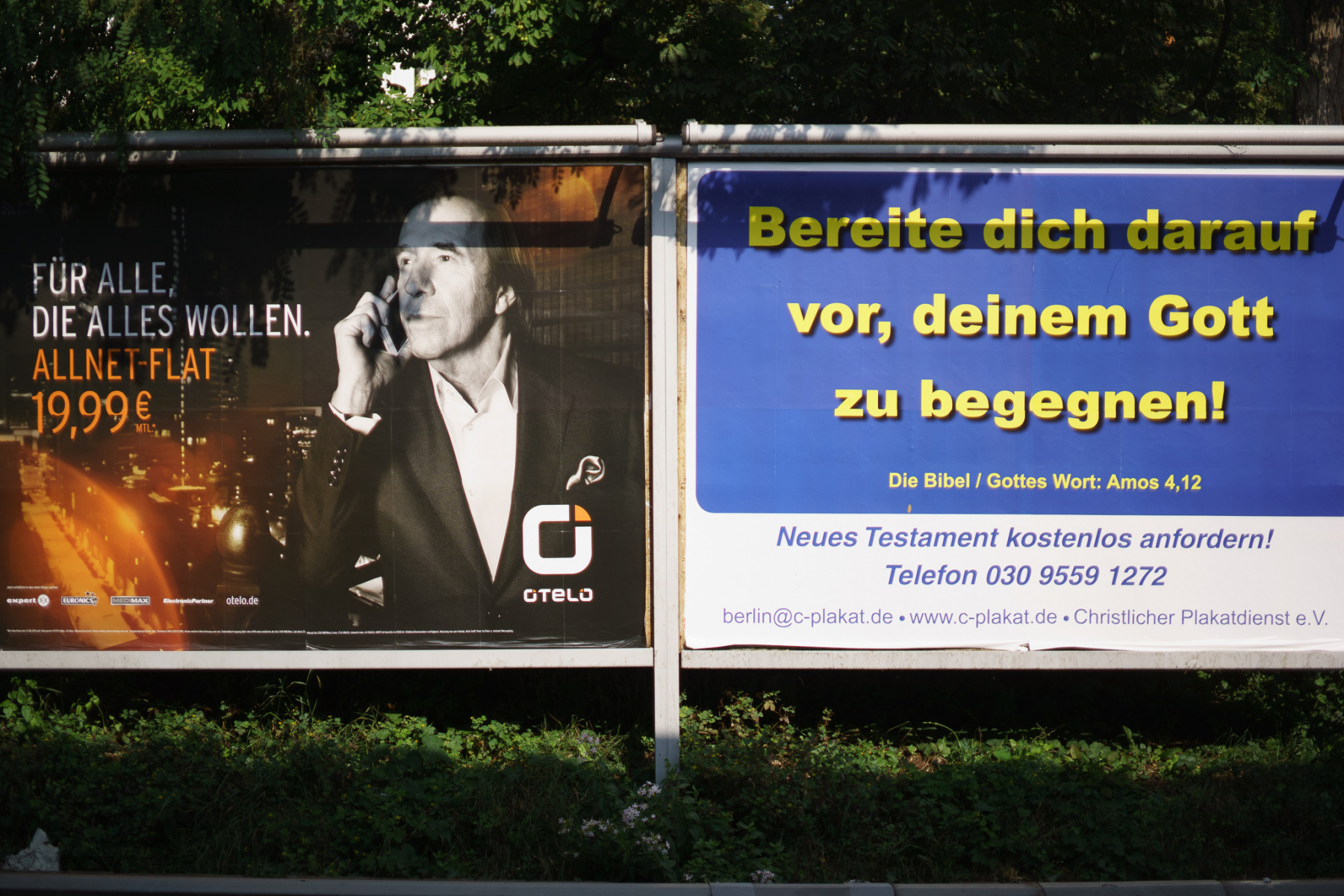 Hier geht es um Bildkombinationen. Allerdings nicht um meine, sondern um die von Plakatklebern. Mir ist irgendwann mal aufgefallen, dass Doppelplakate farblich oder manchmal auch formal zu einander passen. Unabsichtlich oder absichtlich aufeinander Bezug nehmen. Diese Kombinationen fotografiere ich seit einigen Jahren und füge sie zu einer kleinen wachsenden Sammlung hinzu.