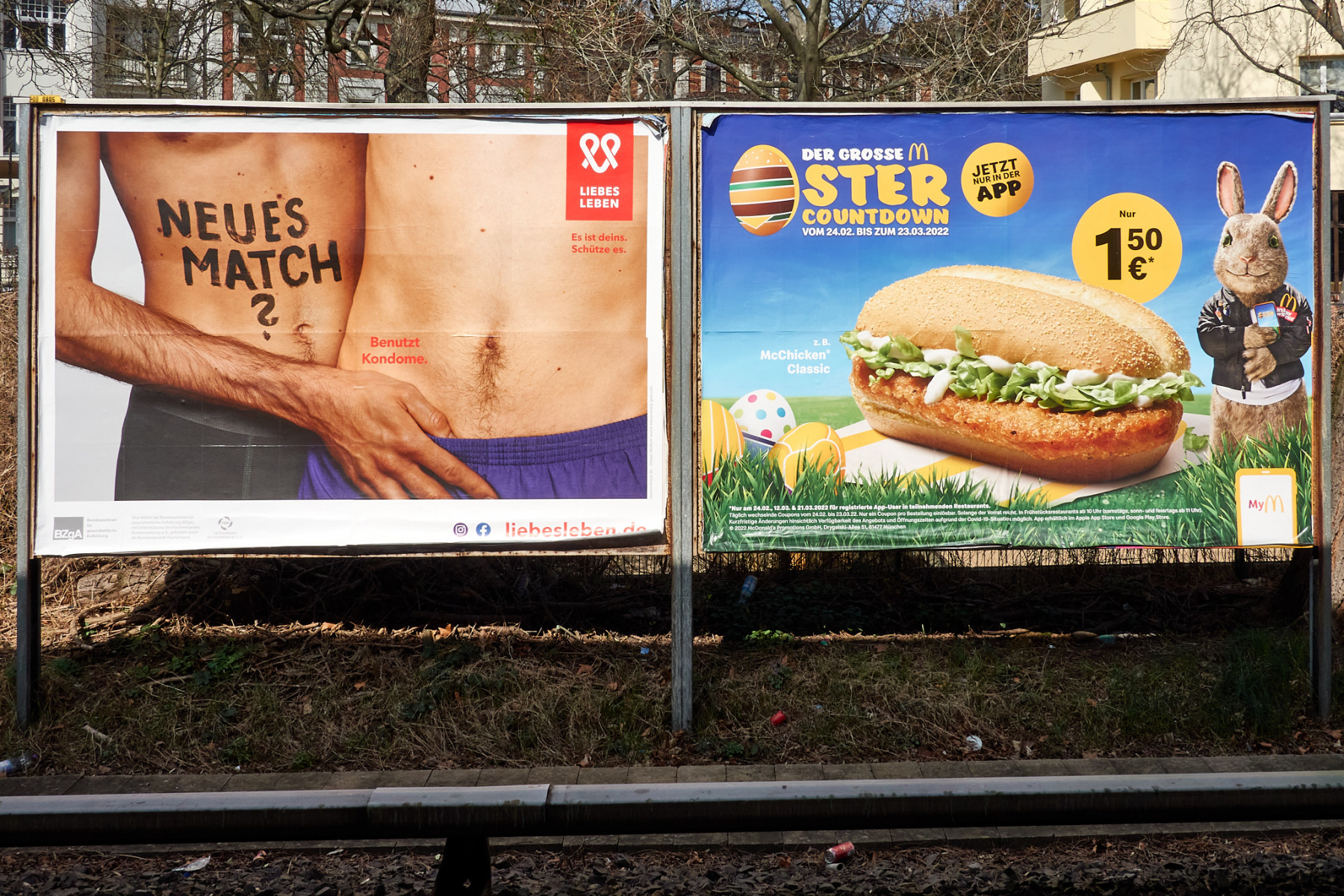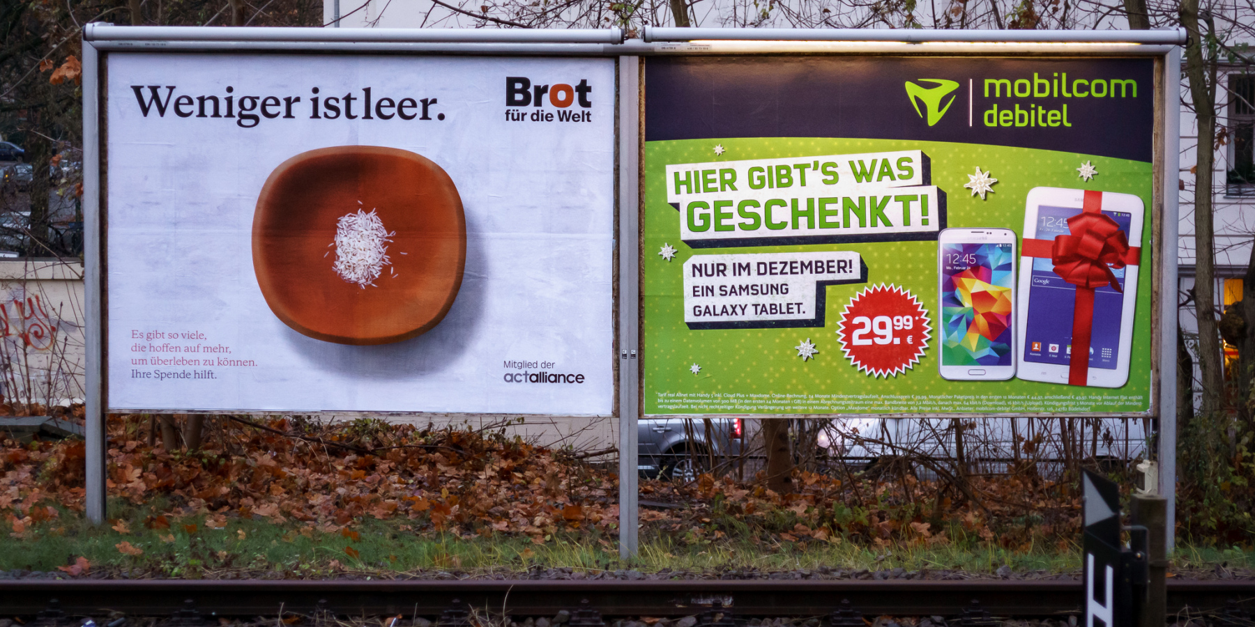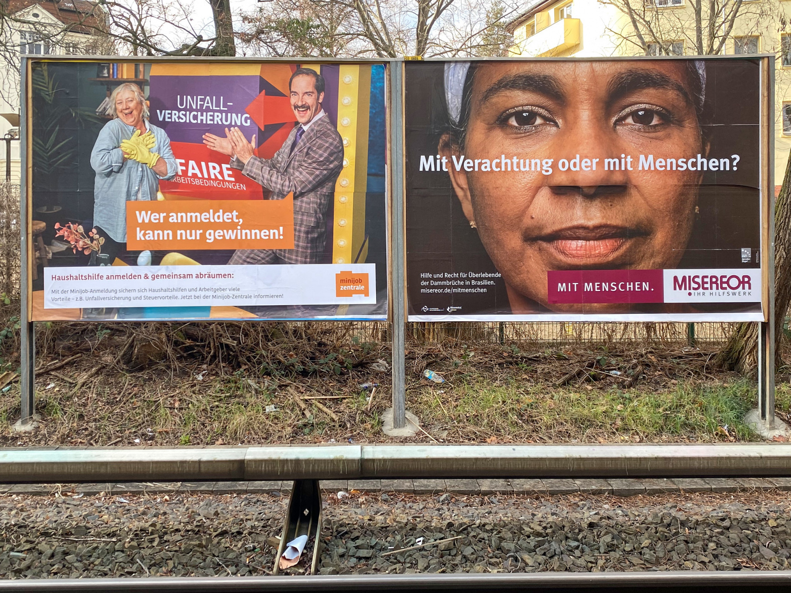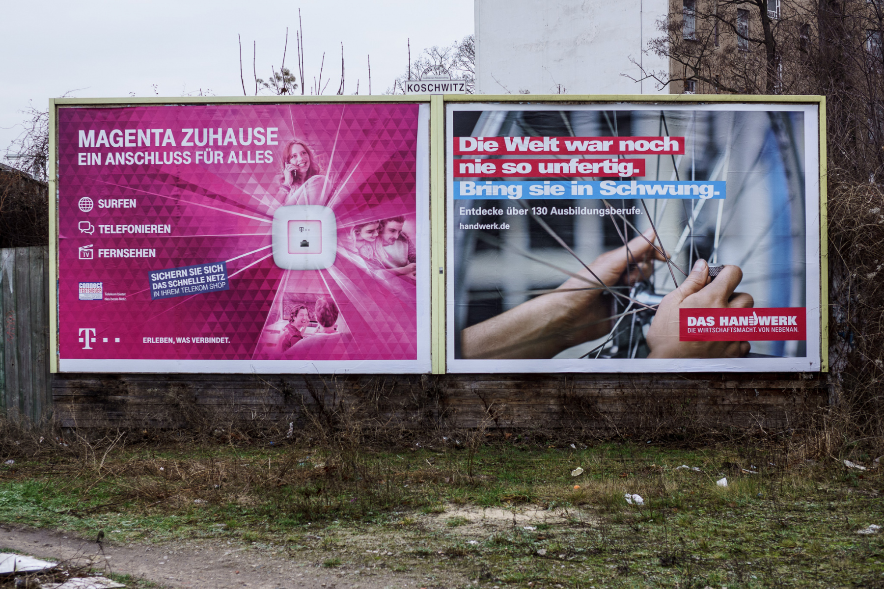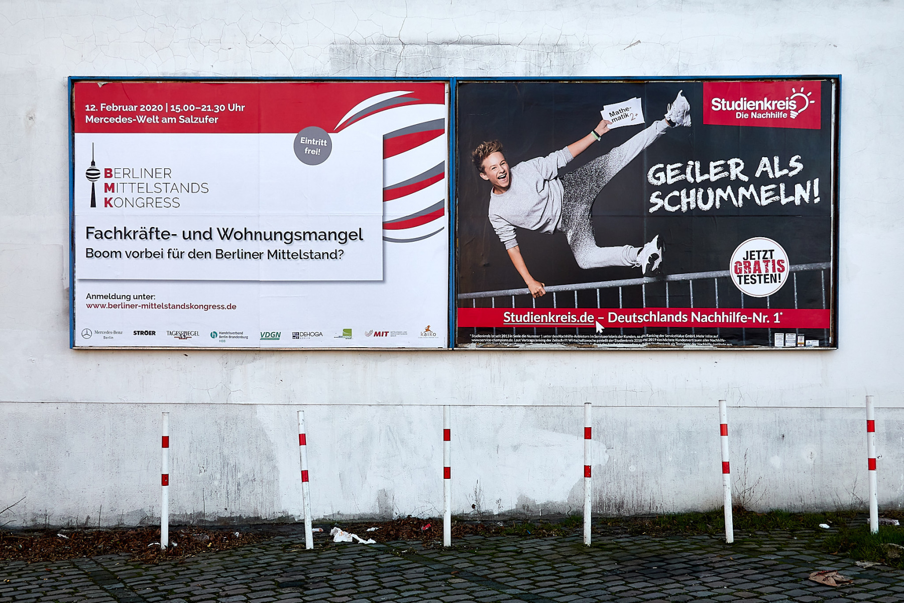 Hier geht es um Bildkombinationen. Allerdings nicht um meine, sondern um die von Plakatklebern. Mir ist irgendwann mal aufgefallen, dass Doppelplakate farblich oder manchmal auch formal zu einander passen. Unabsichtlich oder absichtlich aufeinander Bezug nehmen. Diese Kombinationen fotografiere ich seit einigen Jahren und füge sie zu einer kleinen wachsenden Sammlung hinzu.