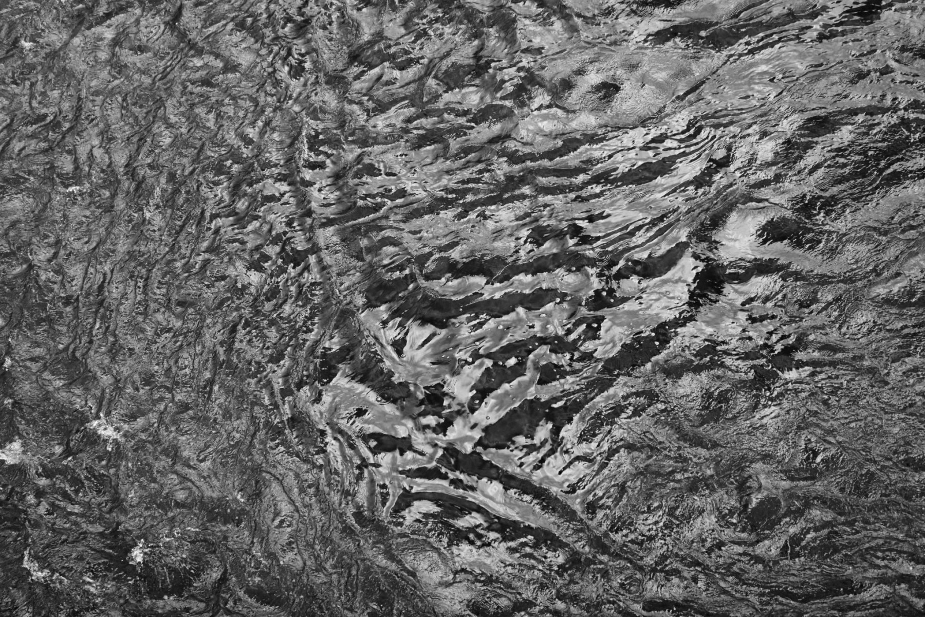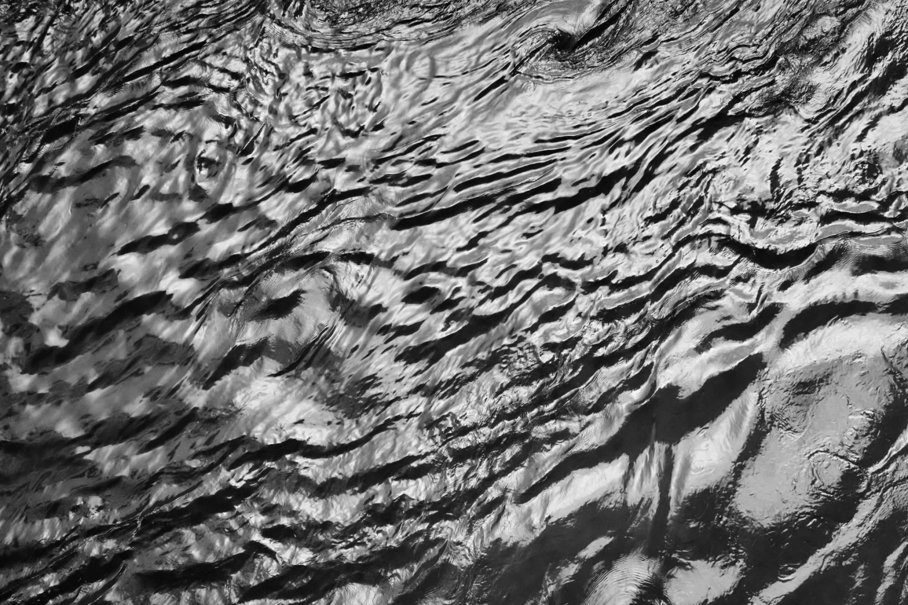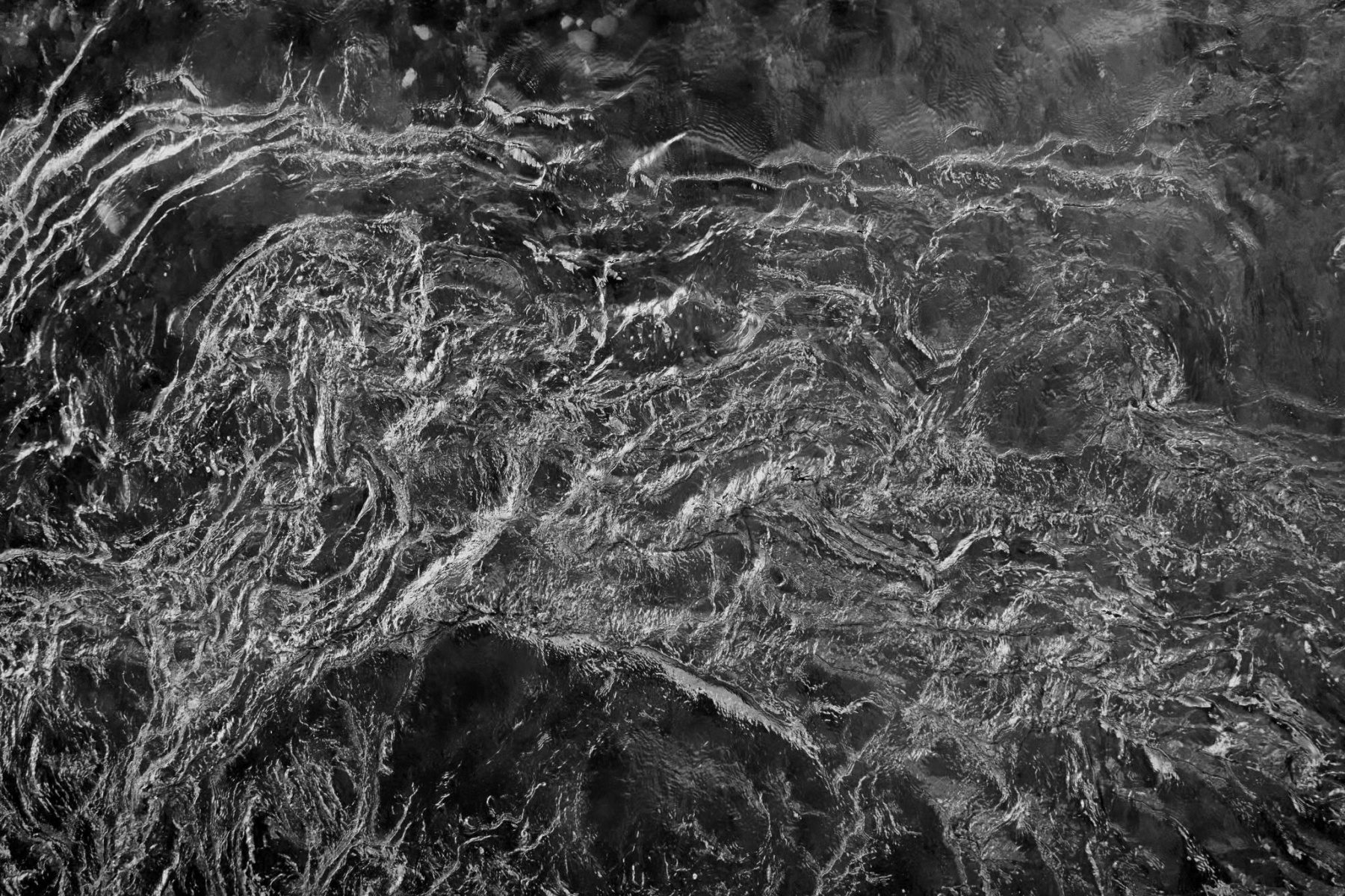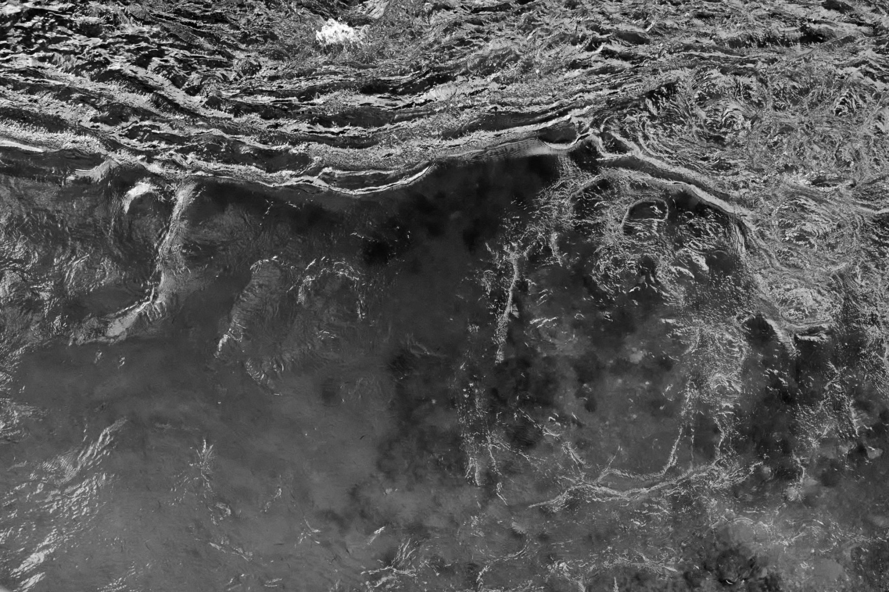 Die Wasseroberflächen sind inhaltlich eine Fortsetzung des Schaums der Zeit. Sie greifen aber einen anderen Aspekt auf und bewegen sich visuell weg vom Abbild hin zum Bild. Sie werden mehr und mehr undurchsichtig. Es verändert sich die Wahrnehmung eines Flusses hin zur Wahrnehmung eines abstrakten Bildes, es verändert sich der Fokus von der Beobachtung durch das Bild hindurch zu einer Beobachtung des opaken Bildes.
